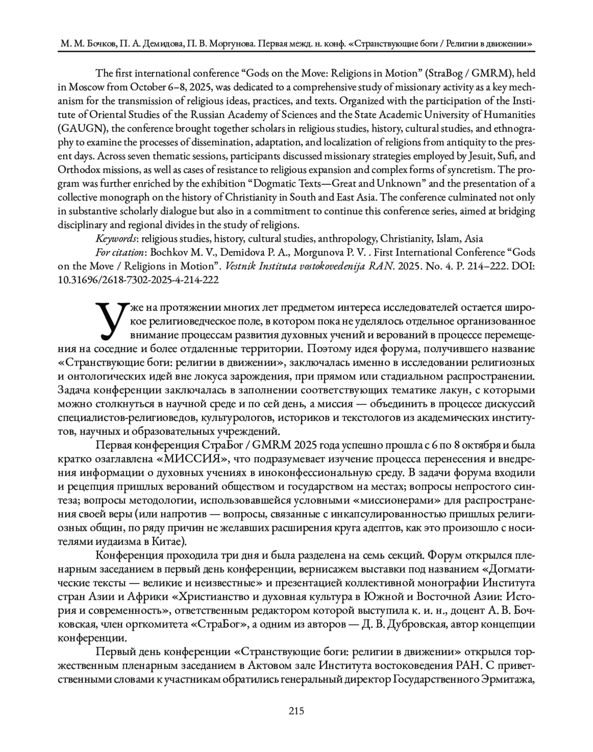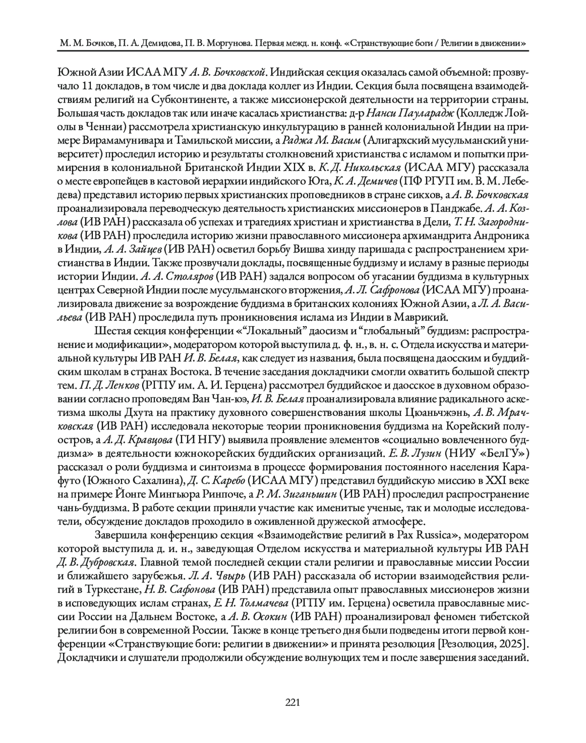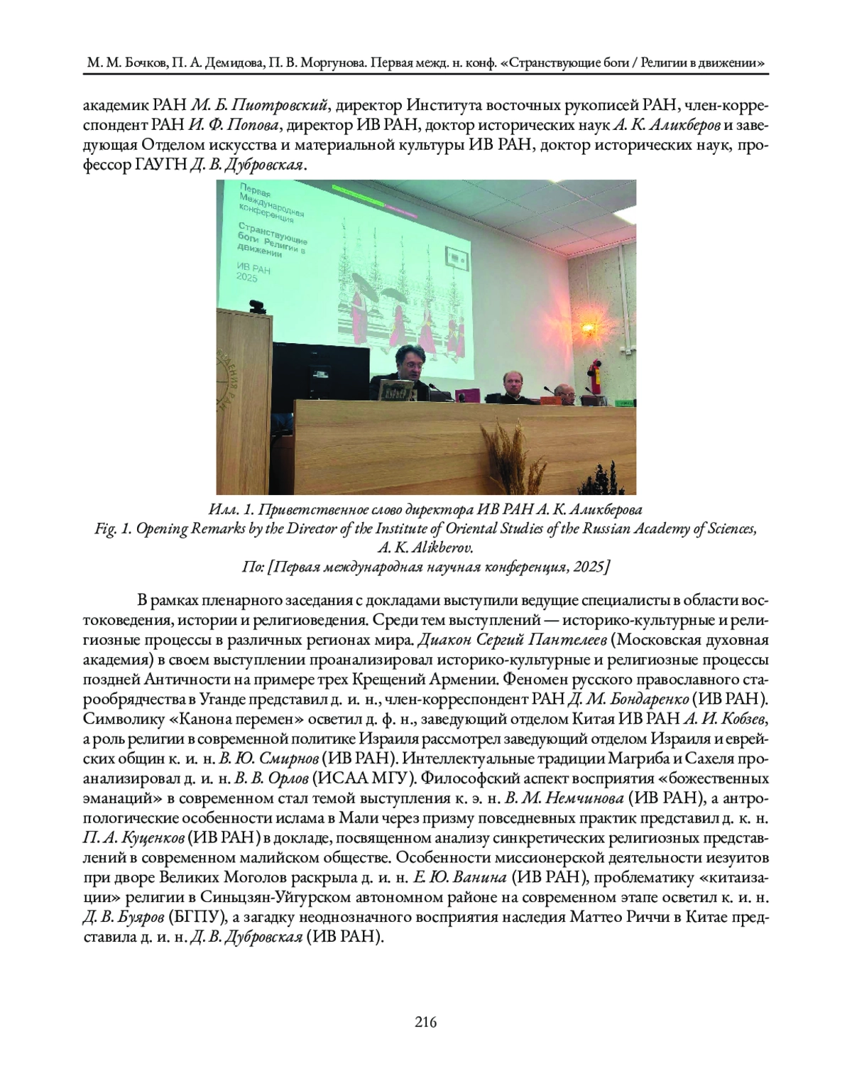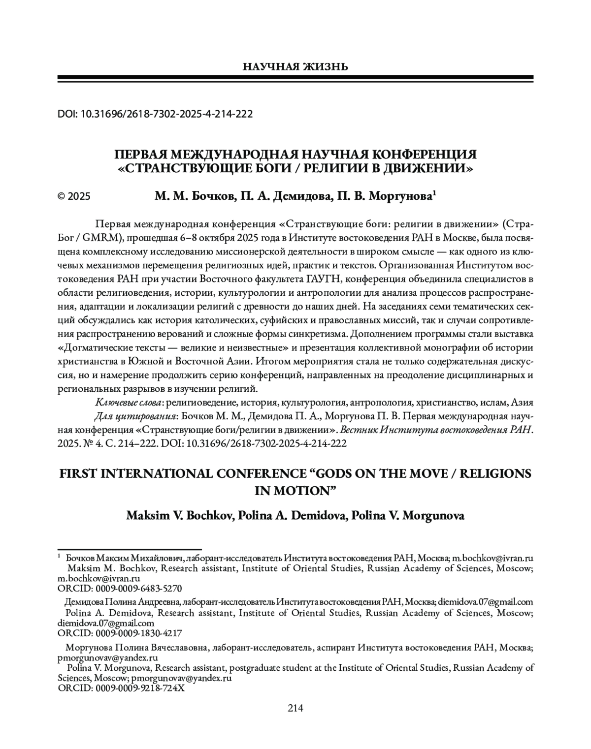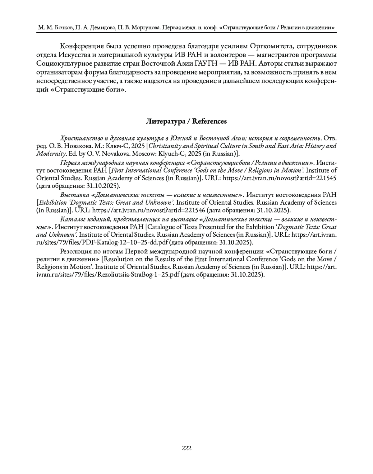 First International Conference ‘Gods on the Move / Religions in Motion’. Institute of Oriental Studies. Russian Academy of Sciences (in Russian). URL: https://art.ivran.ru/novosti?artid=221545(датаобращения:31.10.2025).