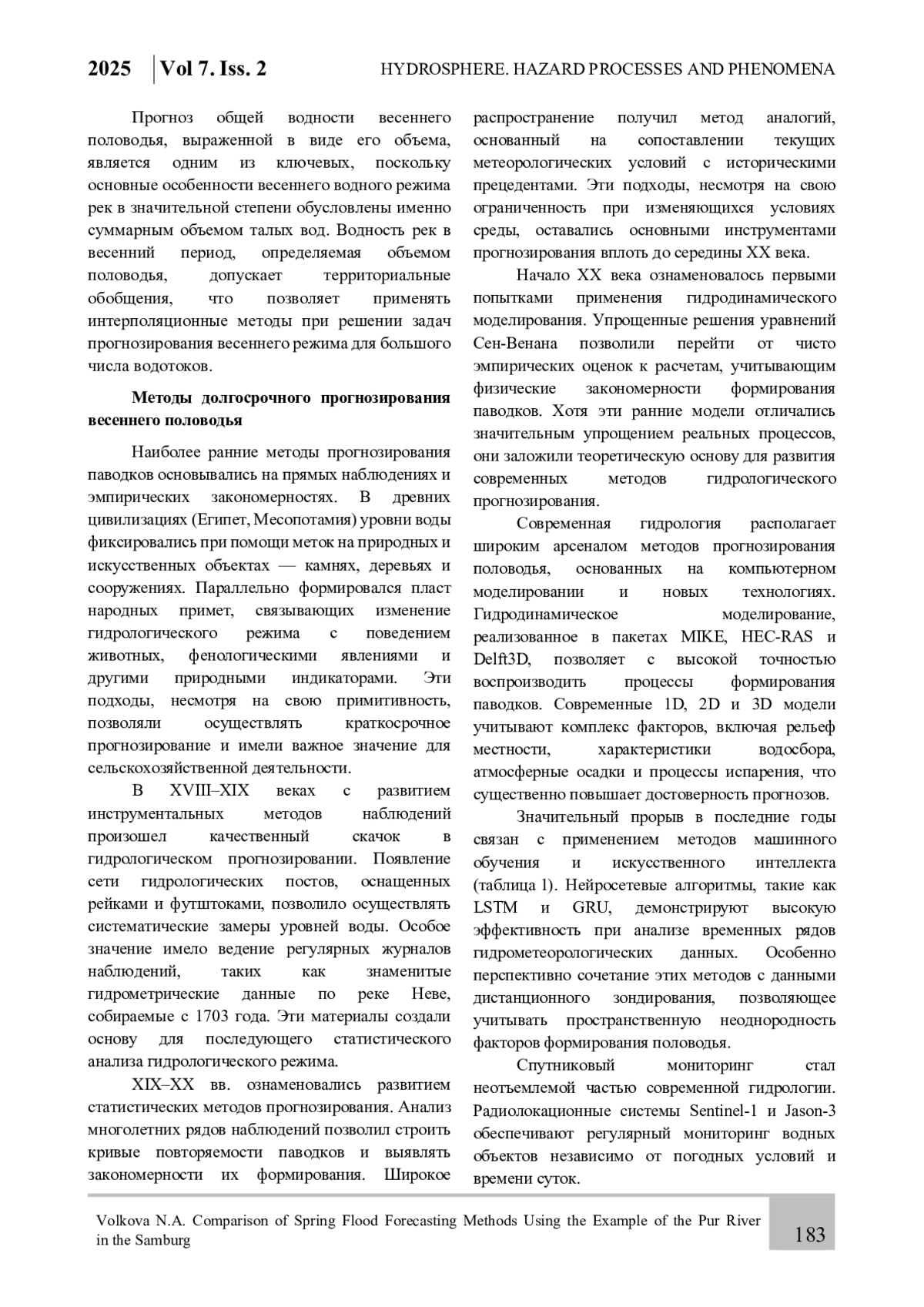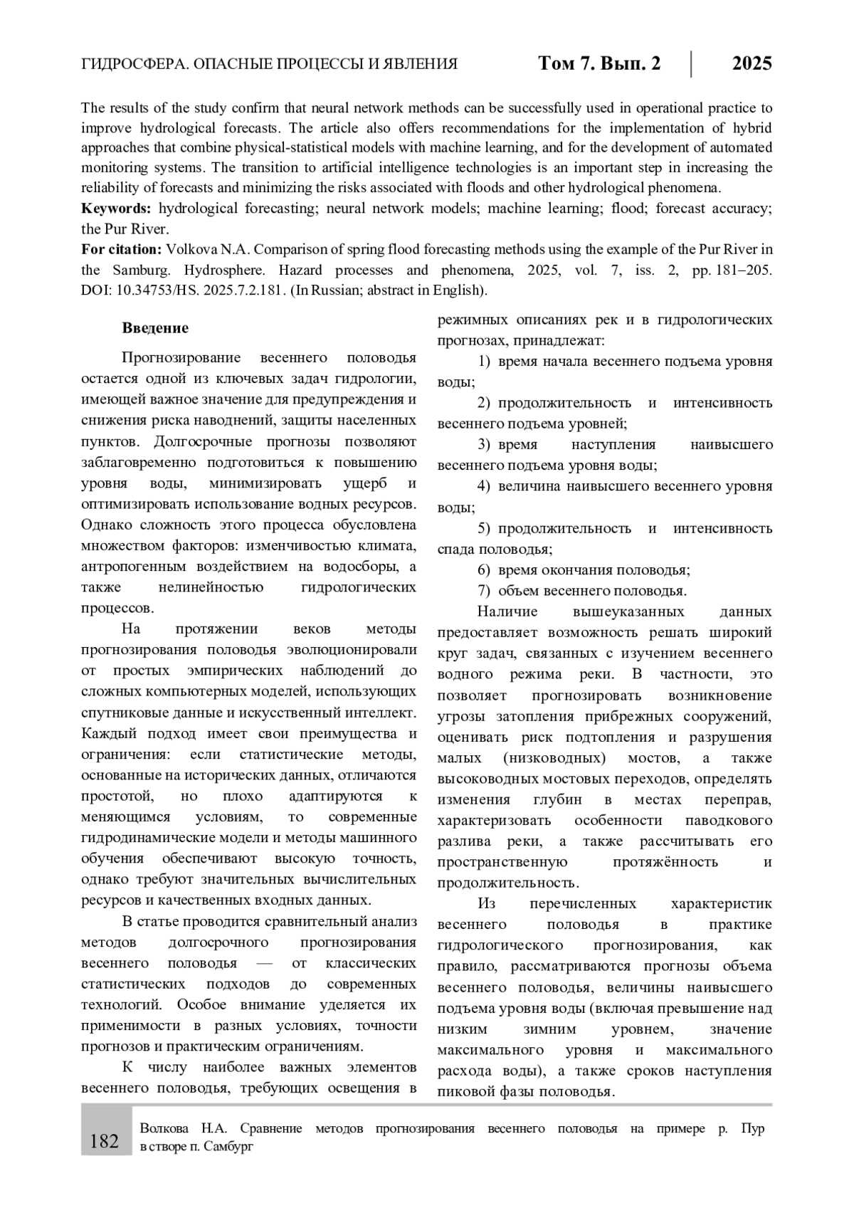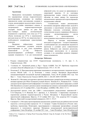 4. Волкова Н.А. Методики долгосрочного прогноза максимальных уровней воды весеннего половодья низовьев крупных рек Обско-Тазовской устьевой области / Волкова Н.А., Ромашова К.В. // Тезисы докладов научно-практической конференции “Состояние и задачи мониторинга природных условий Обь-Енисейского устьевого региона на фоне изменяющегося климата и интенсивной хозяйственной деятельности” (22-23 октября 2024 г., Санкт-Петербург, ААНИИ). СПб., 2024. С. 9-11.