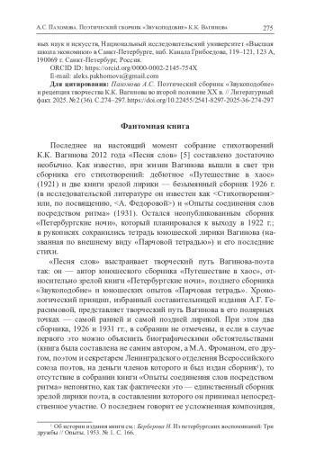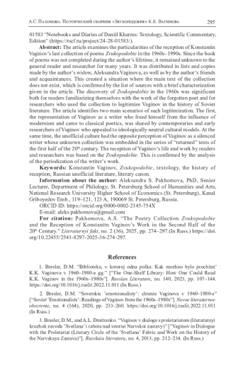 11. Пахомова А. Источники текста последней поэтической книги К.К. Вагинова “Звукоподобие” // Летняя школа по русской литературе. 2015. Т. 11. № 3. С. 250-261. EDN: UNARJP