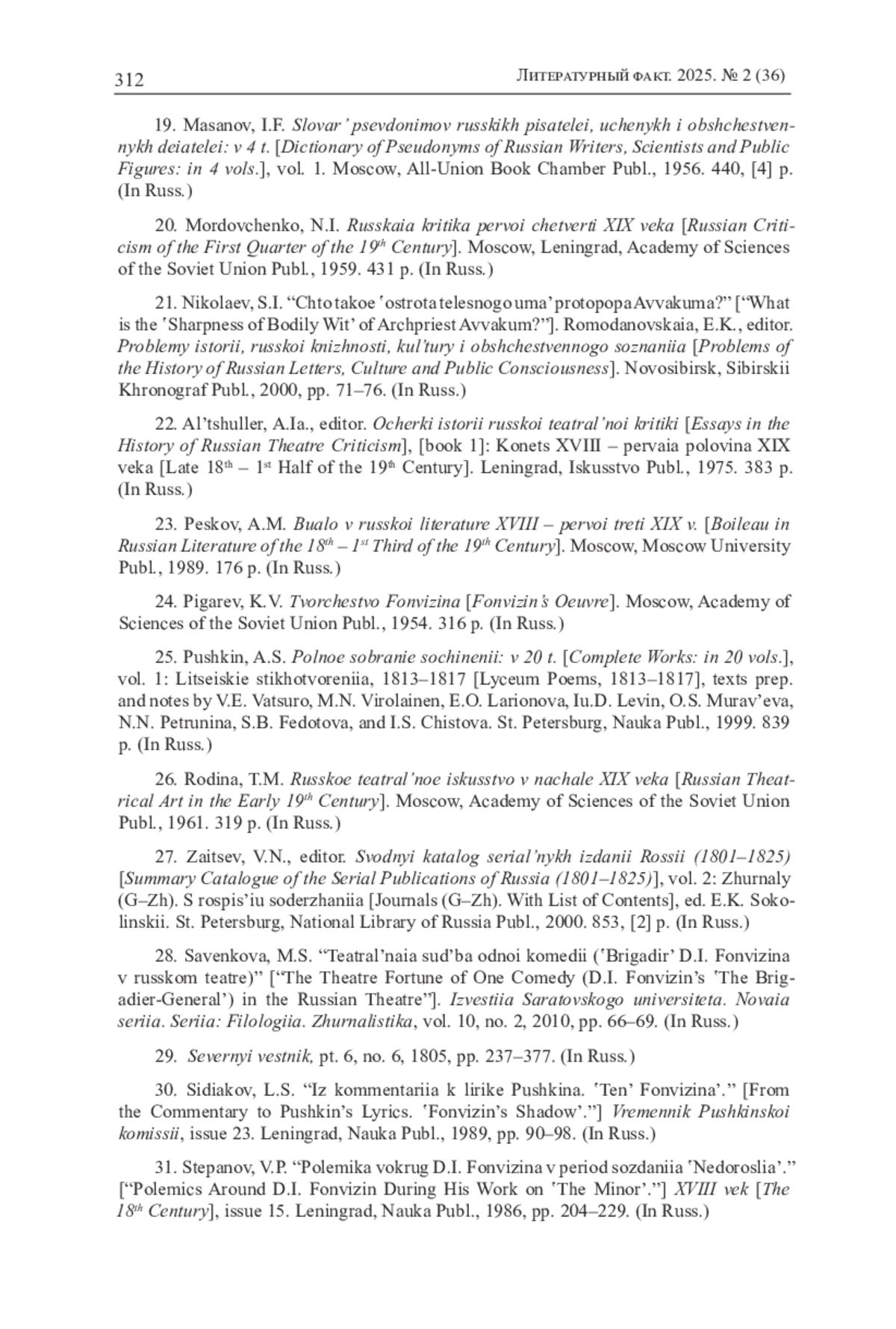 20. Мордовченко Н.И. Русская критика первой четверти XIX века. М.; Л.: АН СССР, 1959. 431 с.