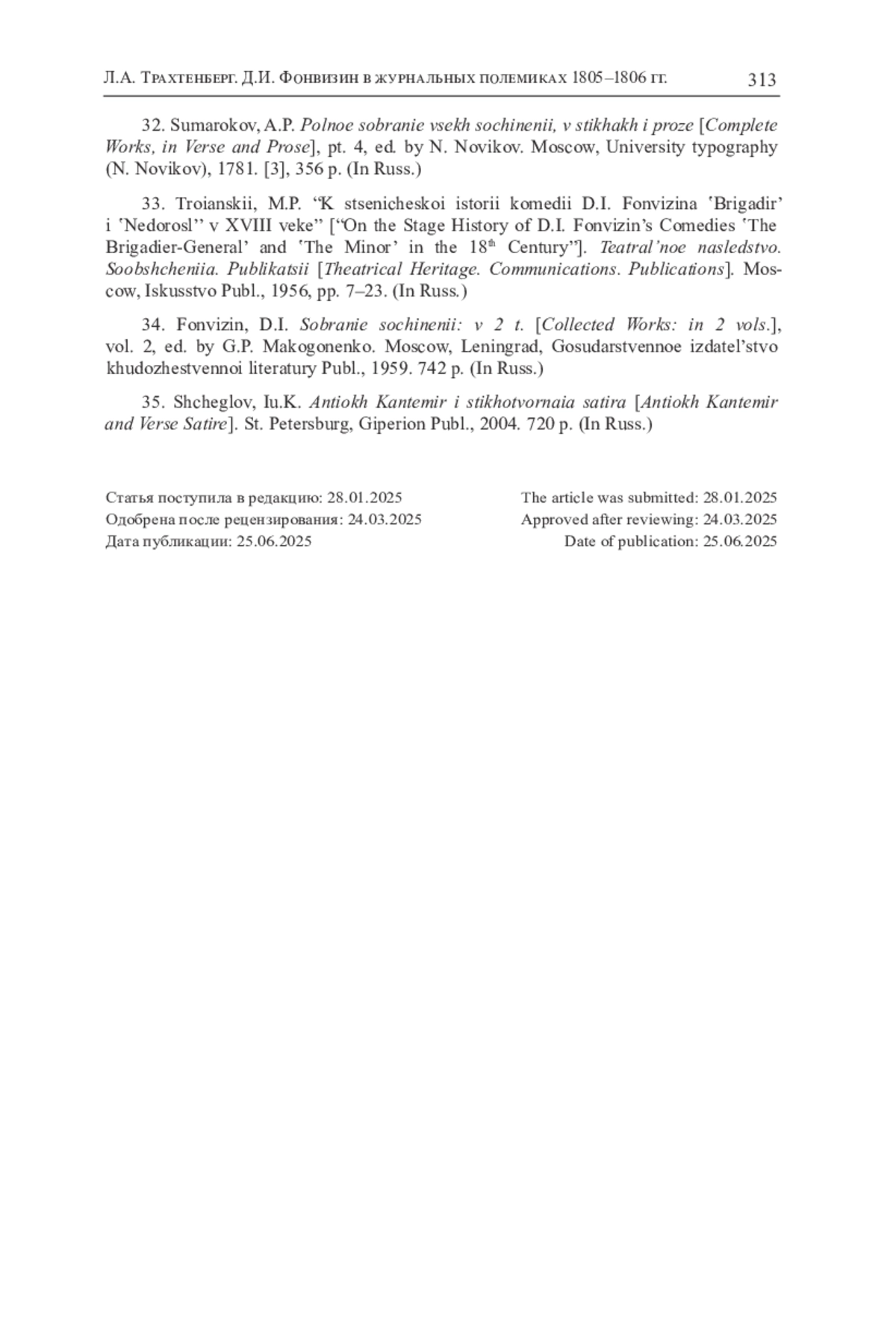 35. Щеглов Ю.К. Антиох Кантемир и стихотворная сатира. СПб.: Гиперион, 2004. 720 с. EDN: QRCAAJ