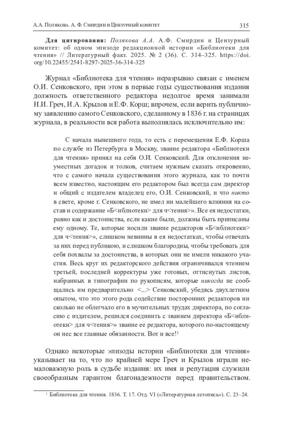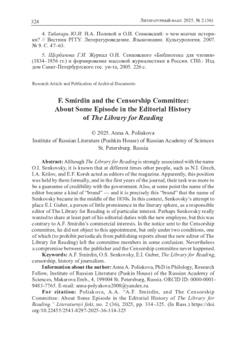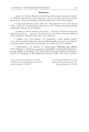 4. Табакарь Ю.И. Н.А. Полевой и О.И. Сенковский: о чем молчат историки? // Вестник РГГУ. Литературоведение. Языкознание. Культурология. 2007. № 9. С. 47-63.