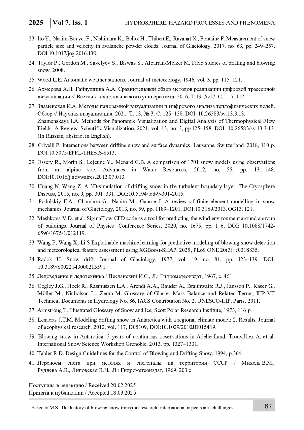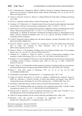 24. Taylor P., Gordon M., Savelyev S., Biswas S., Albarran-Melzer M. Field studies of drifting and blowing snow, 2008.