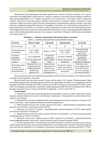 3. Принципиально различное позиционирование абсолютных лидеров – Китая, США и России – в отдельных кластерах эмпирически подтверждает глубокие различия в их национальных энергетических стратегиях и векторах развития.