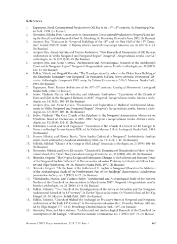 10. Седов, Владимир. “Надвратная церковь Богоявления в Новгородском Благовещенском монастыре на Мячине. По материалам раскопок 2005-2006 гг”.. Новгород и Новгородская земля. История и археология, no. 32 (2018): 331-43.