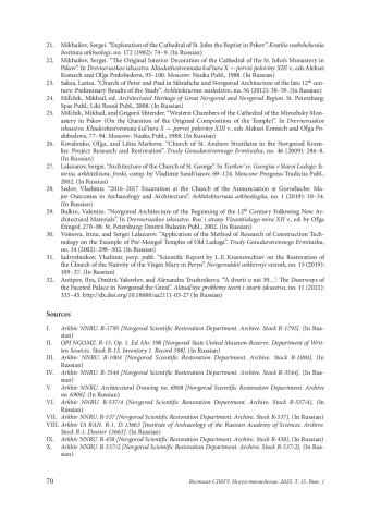 31. Ядрышников, Владимир, подг. публ. “Научный отчет Л. Е. Красноречьева о реставрации церкви Рождества Богородицы в Перыни”. Новгородский архивный вестник, no. 15 (2019): 109-37.