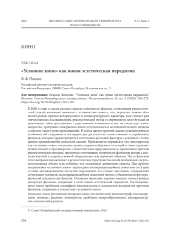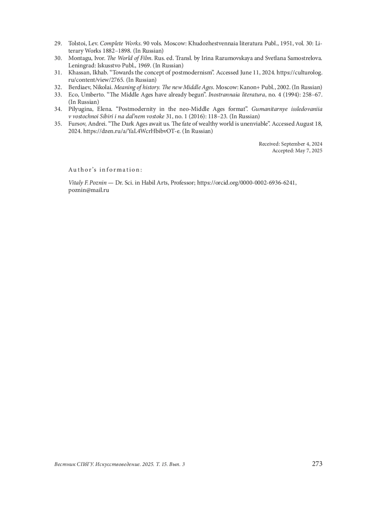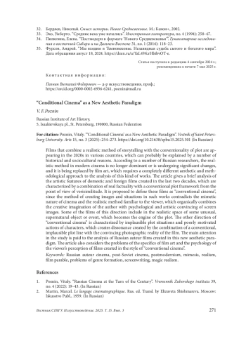 1. Познин, Виталий. “Российское кино: между прошлым и будущим”. Временник Зубовского института 39, no. 4 (2022): 19-43.