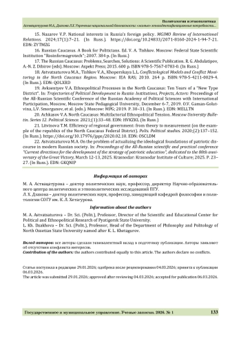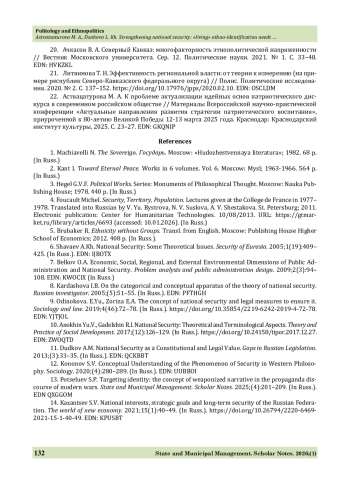 13. Поцелуев С. П. Целясь в идентичность // Государственное и муниципальное управление. Ученые записки. 2025. № 4. С. 201-209.