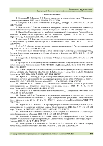 1. Родионов М. А., Волкова Т. А. Политические элиты в современном мире // Социально-гуманитарные знания. 2025. № 4. С. 299-304.