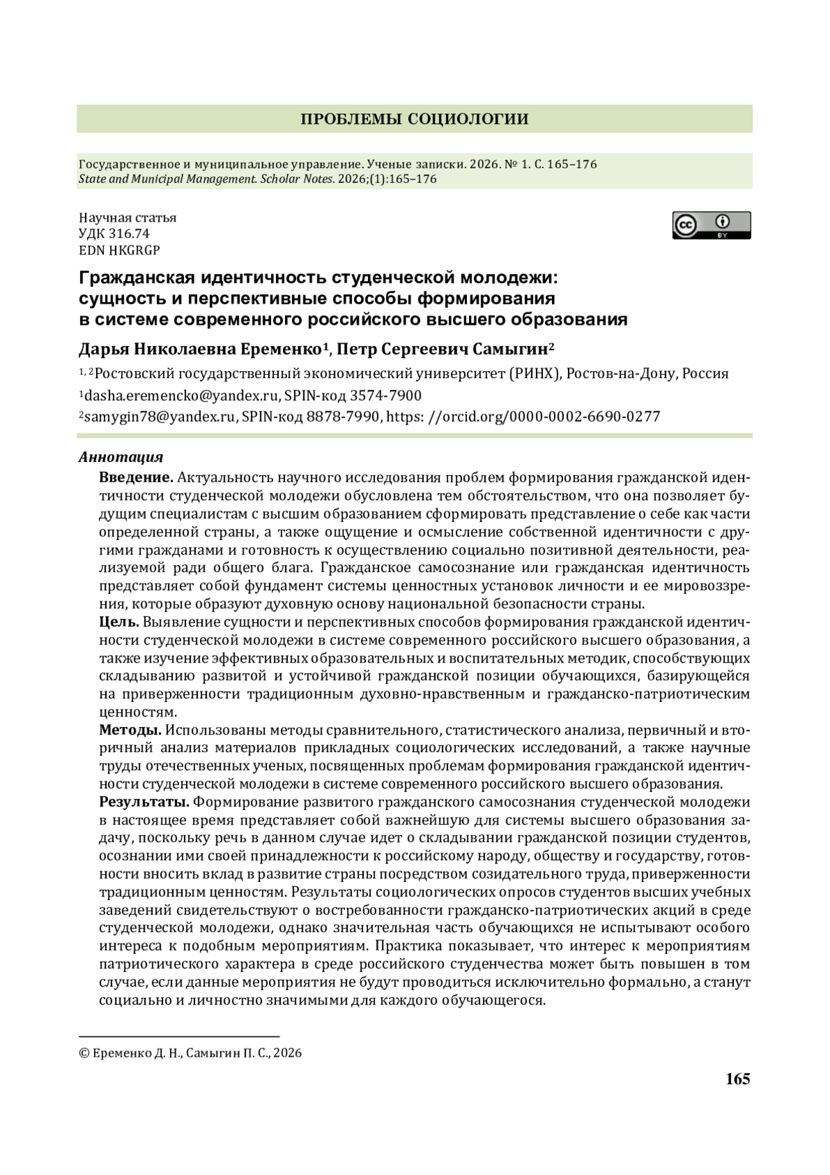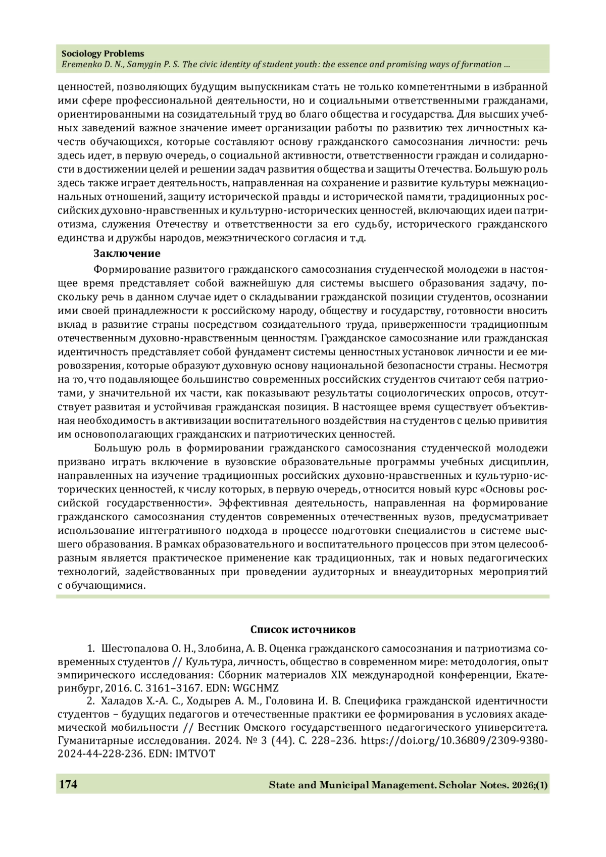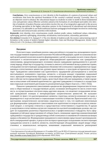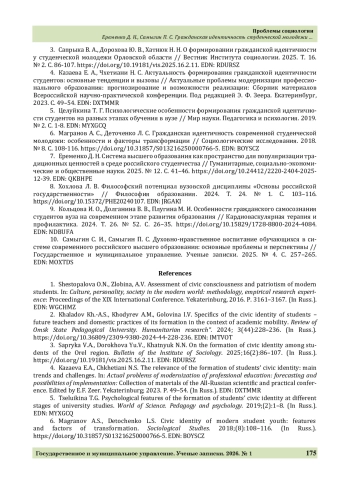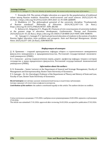 7. Еременко Д. Н. Система высшего образования как пространство для популяризации традиционных ценностей в среде российского студенчества // Гуманитарные, социально-экономические и общественные науки. 2025. № 12. С. 41-46. https://doi.org/10.24412/2220-2404-2025-12-39.