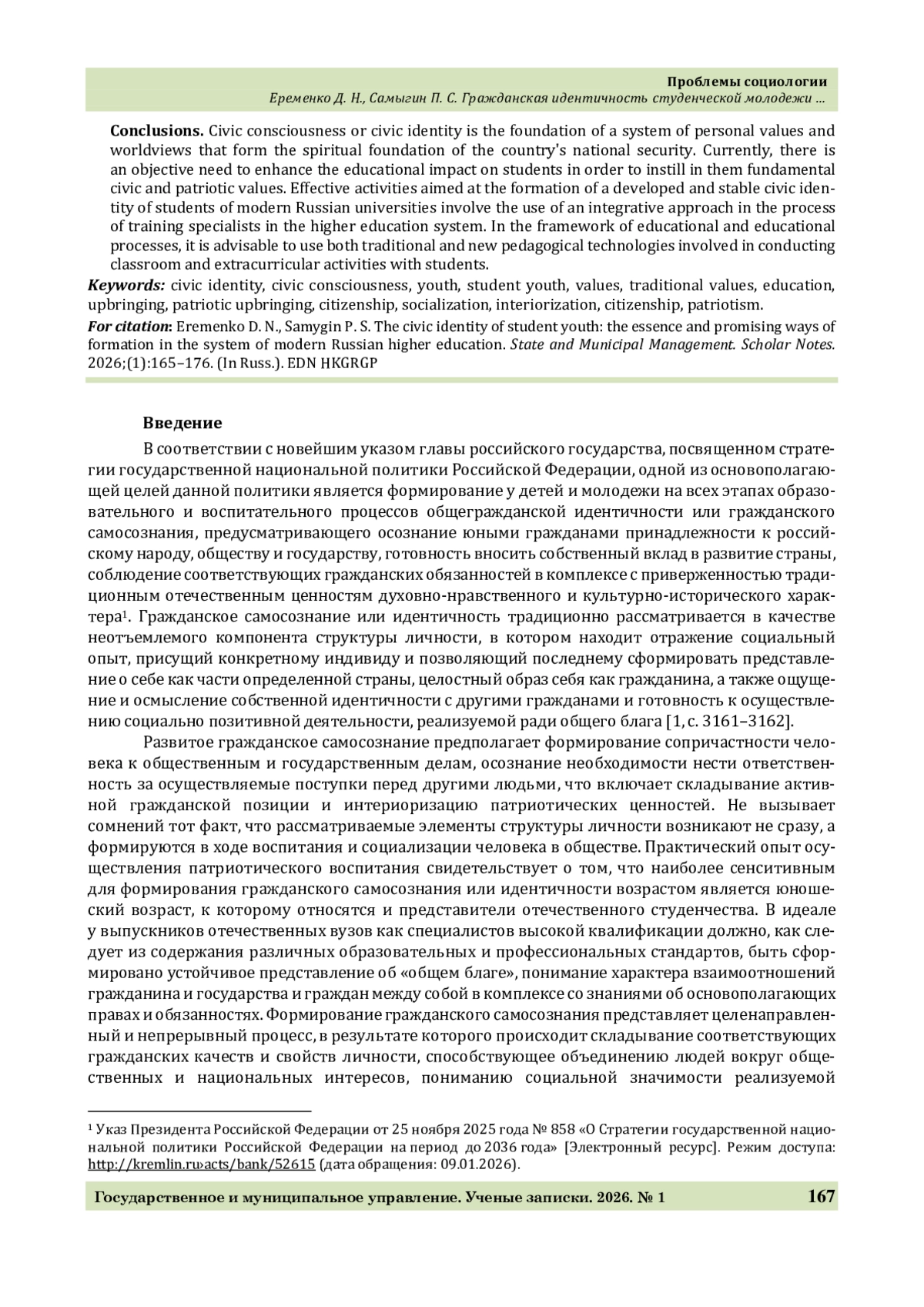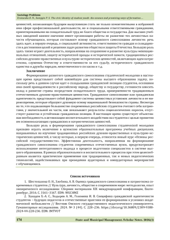 3. Сапрыка В. А., Дорохова Ю. В., Хатнюк Н. Н. О формировании гражданской идентичности у студенческой молодежи Орловской области // Вестник Института социологии. 2025. Т. 16. № 2. С. 86-107. https://doi.org/10.19181/vis.2025.16.2.11.