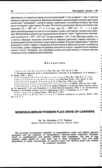 The processes accompanied relaxation of nonequilibrium carrier and ballistic phonone generation and the character of nonequilibrium phonone-carrier interaction (“phonone wind”) on quasistationary and impulse excitation were considered. The case of long excitation pulses typical for “cold laser” was in detail investigated. Time and radial dependence of carrier concentration on phonone power and diamond purity was received by numerical calculation