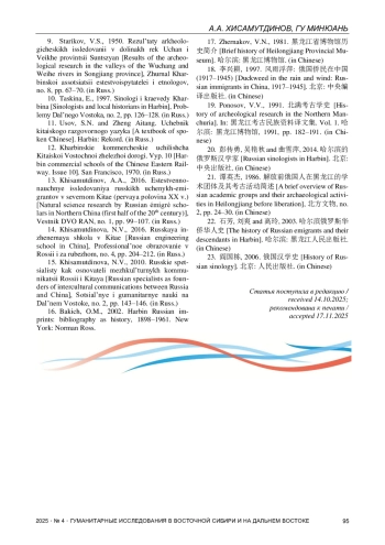 13. Хисамутдинов А.А. Естественнонаучные исследования русских ученых-эмигрантов в северном Китае (первая половина XX в.) // Вестник ДВО РАН. 2016. № 1. С. 99-107.