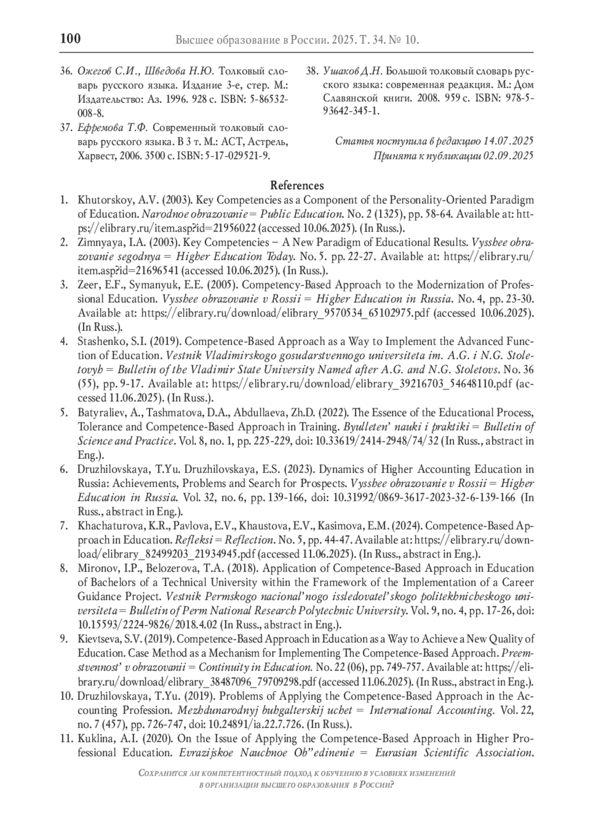 34. Поляруш А.А. Причины несовершенства компетентностного подхода в высшем образовании // Эпоха науки. 2021. № 25. С. 232-235. DOI: 10.24412/2409-3203-2021-25-232-235 EDN: OLFYFS