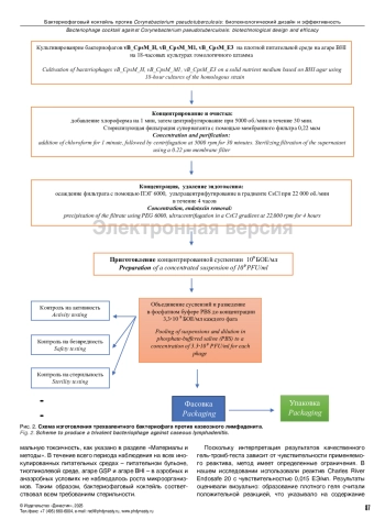 Казеозный лимфаденит – хроническое инфекционное заболевание, наносящее значительный экономический ущерб отрасли жвачных животных во всем мире, возбудителем которого является Corynebacterium pseudotuberculosis [1, 2]. Традиционная антибиотикотерапия имеет ограничения из-за образования биопленок, внутриклеточной персистенции бактерий и роста антимикробной резистентности. Перспективной альтернативой является бактериофаговая терапия, использующая способность специфичных вирусов лизировать патогенные бактерии [3, 4]. В данной работе описана биотехнологическая разработка коктейля бактериофагов, нацеленного на C. pseudotuberculosis, и оценены его стабильность, кинетика адсорбции, методы очистки, а также эффективность in vivo на моделях мышей.