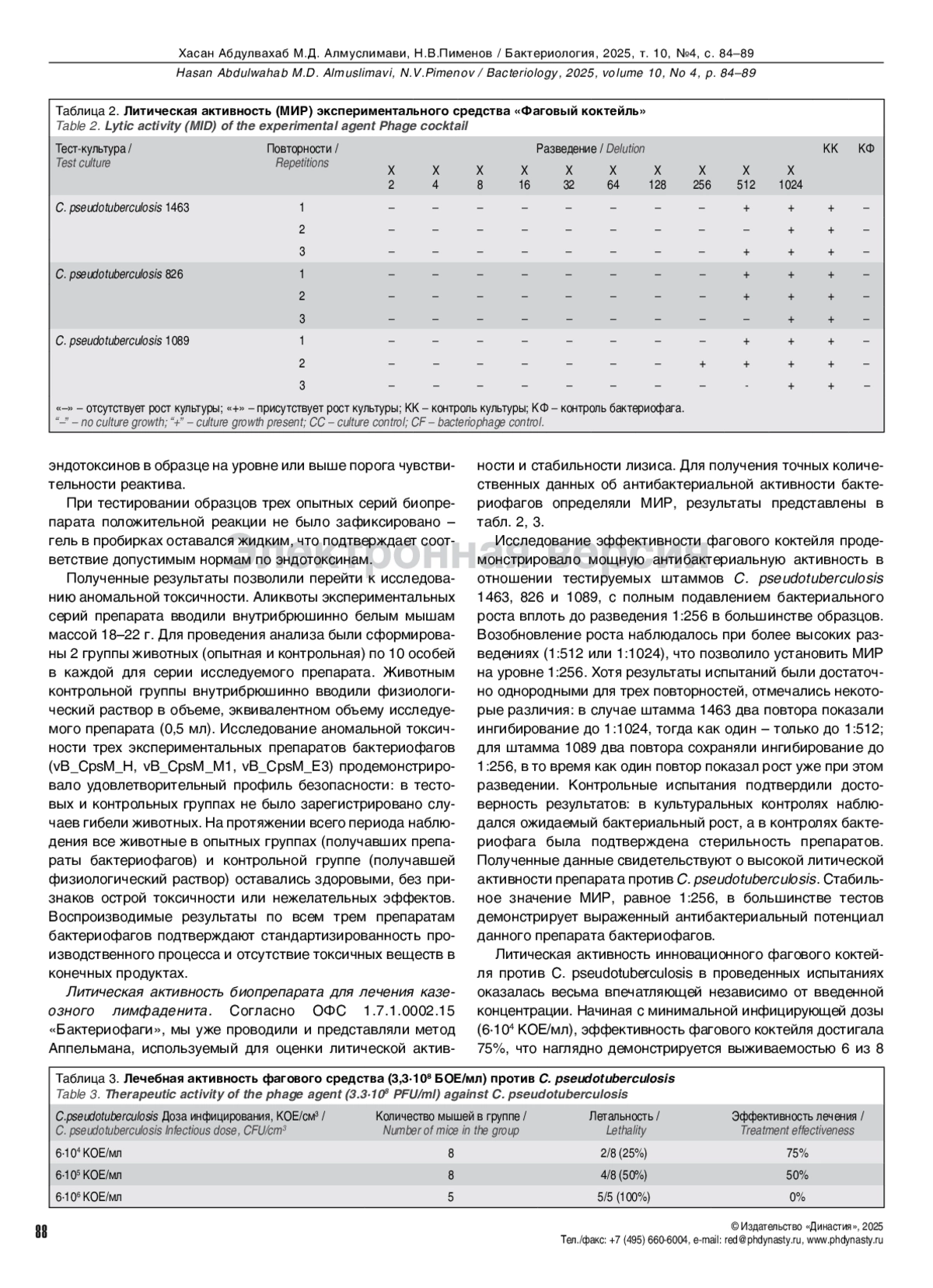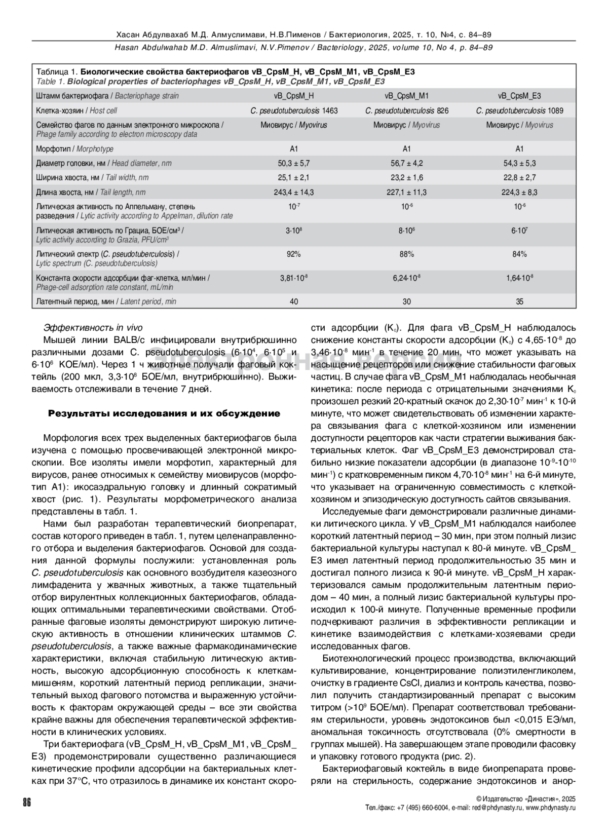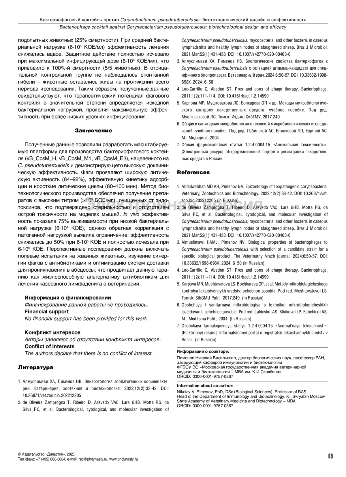 3. Алмуслимави ХА, Пименов НВ. Биологические свойства бактериофагов к Corynebacterium pseudotuberculosis с селекцией штамма-кандидата для специфичного биопрепарата. Ветеринарный врач. 2024;6:50-57. Х_2024_6_50. DOI: 10.33632/1998-698