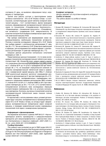 3. Вольников ВР, Дуракова ОС, Салихов РР, Самохвалова ЮИ, Авдеева НГ, Клокова ОД, и др. Экспериментальное обоснование возможности использования среды на основе ферментативного гидролизата фибрина для получения компонентов холерной химической вакцины. Проблемы особо опасных инфекций. 2023;2:101-105. DOI: 10.21055/0370-1069-2023-2-101-105