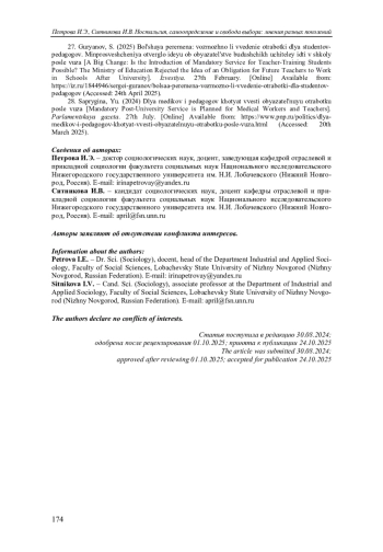 28. Для медиков и педагогов хотят ввести обязательную отработку после вуза // Парламентская газета. 27.07.2024. URL: https://www.pnp.ru/politics/dlya-medikov-i-pedagogov-khotyat-vvesti-obyazatelnuyu-otrabotku-posle-vuza.html (дата обращения: 20.03.2025).
