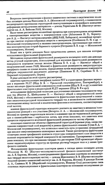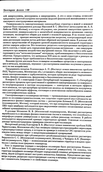 Представлена краткая информация о Первом Всероссийском семинаре “Нелинейные процессы и проблемы самоорганизации в современном материаловедении”, состоявшемся в Московском государственном университете в апреле 1997 г.