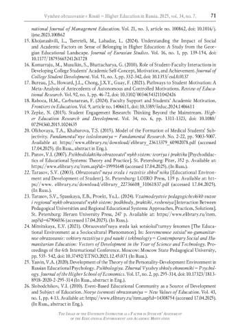 14. Bao D.Q., Phong N.D., Tho N.D. Co-creation in higher education and quality of college life: the roles of students’ co-creation effort, interactions, and mindfulness // The International Journal of Management Education. 2023. Vol. 21. No. 3. Article no. 100862. DOI: 10.1016/j.ijme.2023.100862 EDN: WRCRJS