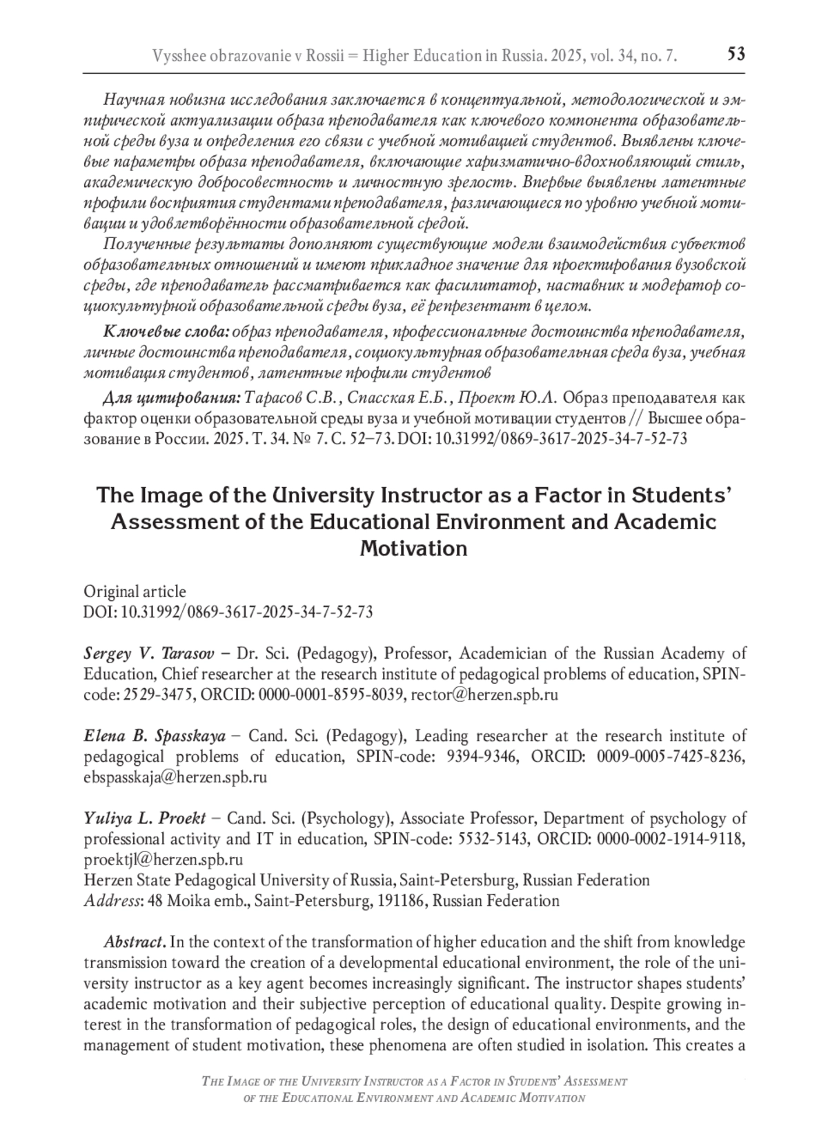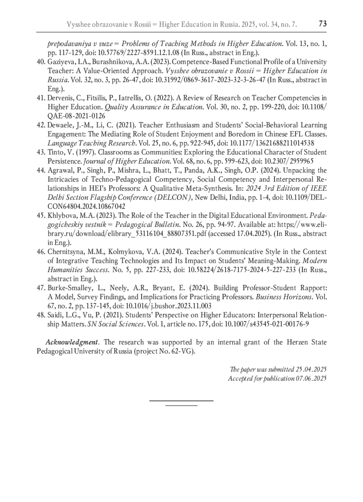 48. Saidi L.G., Vu P. Students’ perspective on higher educators: interpersonal relationship matters // SN Social Sciences. 2021. Vol. 1. Article no. 175. DOI: 10.1007/s43545-021-00176-9 EDN: XZQAFK