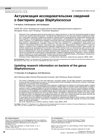 Turdymatov BI, Mombaeva BK. Vliyanie Staphylococcus aureus na organizm cheloveka. ELS. 2025;30:21-25. (In Russian).