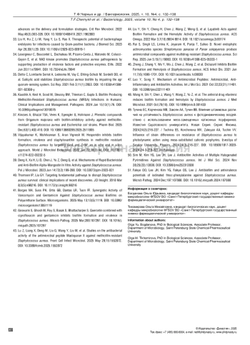 7. Li J, Wen Q, Gu F, An L, Yu T. Non-antibiotic strategies for prevention and treatment of internalized Staphylococcus aureus. Front Microbiol. 2022 Aug 31;13:974984. DOI: 10.3389/fmicb.2022.974984