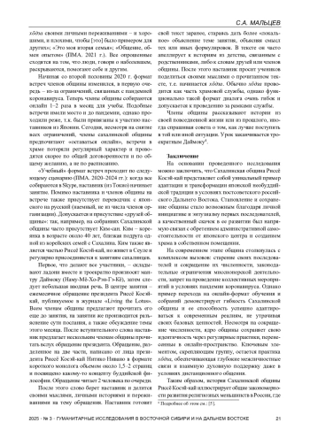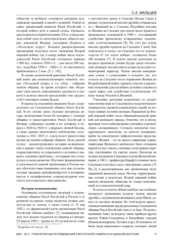 5. Мальцев С.А. Необуддийские практики в условиях культурной трансформации: исследование сахалинского опыта Риссё Косэй-кай // Исторический бюллетень. 2025. Т. 8. № 5. С. 301-308.