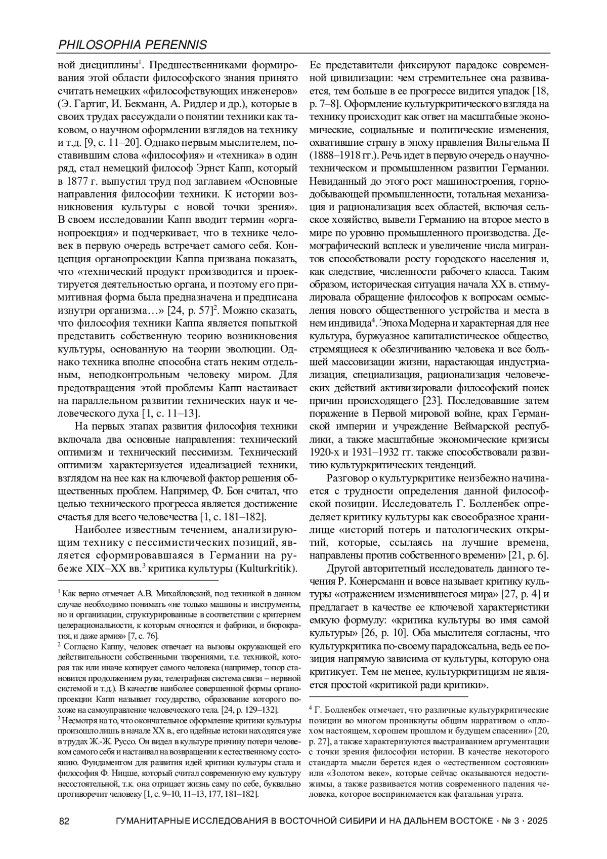 Статья посвящена анализу взглядов на технику в рамках немецкой культуркритики начала XX в. Рассматривая концепции таких мыслителей, как Г. Зиммель, К. Ясперс, О. Шпенглер и Г. Фрайер, авторы стремятся показать культуркритицизм как целостную, но при этом наделенную множеством граней парадигму философской критики эпохи Модерна в целом и ее технического измерения в частности. Все рассмотренные мыслители сходятся в понимании техники как фундаментальной «жизненной формы», а не просто инструмента. При этом техника зачастую предстает в культуркритическом дискурсе как сила, угрожающая субъективности, свободе и жизненной силе человека. Вместе с тем авторы демонстрируют разнообразие подходов внутри критики культуры: от пессимистического диагноза отчуждения и массовизации до попыток интеграции техники в новую политическую и культурную реальность (например, в рамках «реакционного модернизма»).