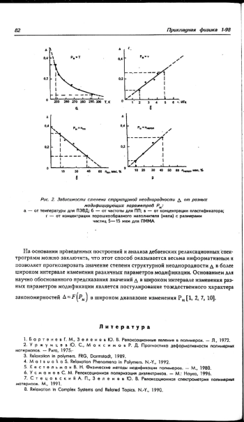 На основании большого количества экспериментальных данных по релаксационным свойствам (механических и диэлектрических) различных полимерных материалов и построения по ним дебаевских релаксационных спектрограмм проведен анализ влияния различных параметров модификации полимеров на степень их структурной неоднородности