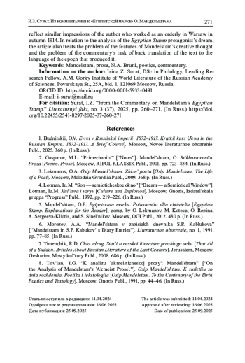 5. Мандельштам О.Э. Египетская марка. Пояснения для читателя / сост. О. Лекманов*, М. Котова, О. Репина, А. Сергеева-Клятис, С. Синельников. М.: ОГИ, 2012. 480 с. EDN: RDVOYF