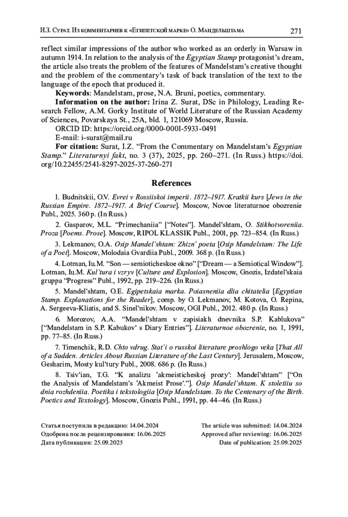 8. Цивьян Т.Г. К анализу “акмеистической прозы”: Мандельштам // Осип Мандельштам. К столетию со дня рождения. Поэтика и текстология. М.: Гнозис, 1991. С. 44-46.