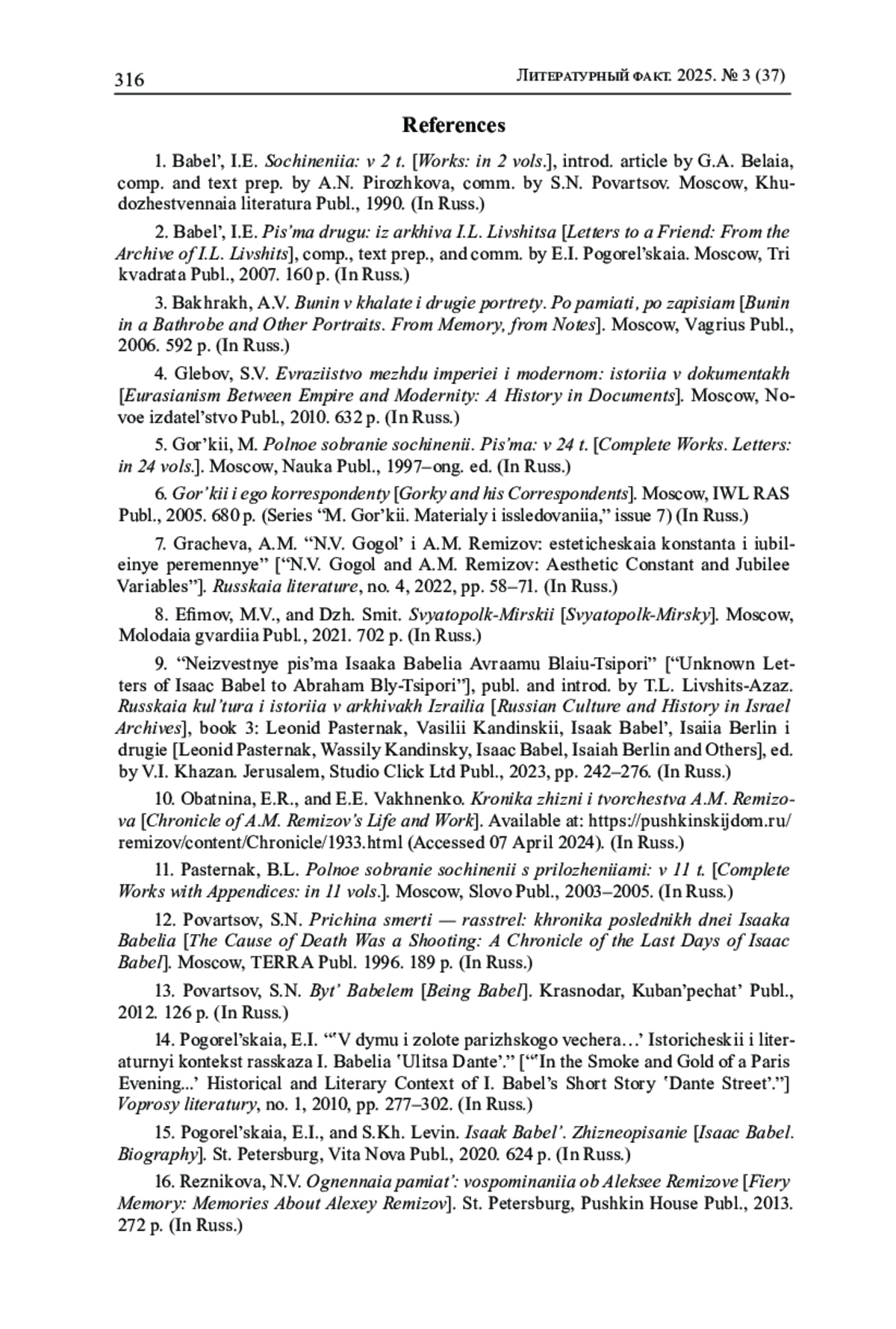 15. Погорельская Е.И., Левин С.Х. Исаак Бабель. Жизнеописание. СПб.: Вита Нова, 2020. 624 с.
