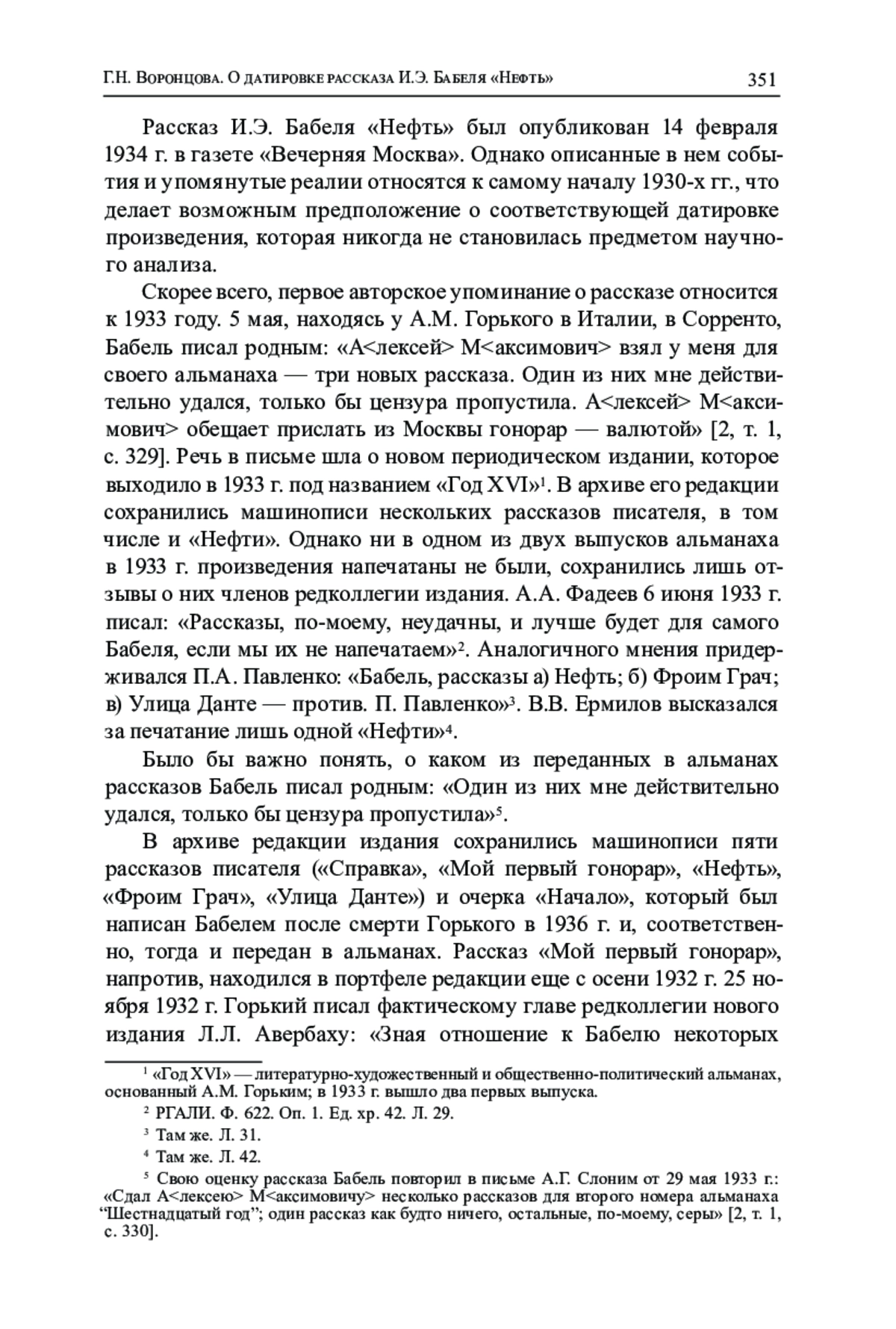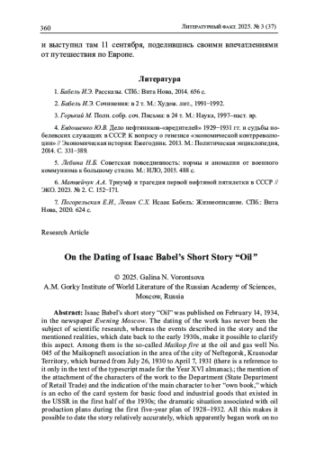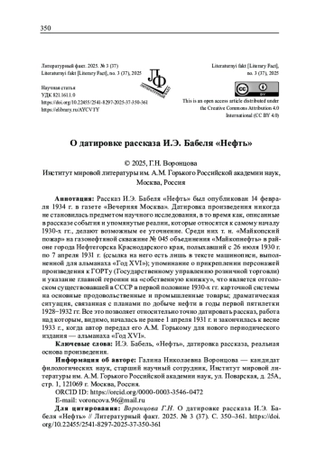 Рассказ И. Э. Бабеля «Нефть» был опубликован 14 февраля 1934 г. в газете «Вечерняя Москва». Однако описанные в нем события и упомянутые реалии относятся к самому началу 1930-х гг., что делает возможным предположение о соответствующей датировке произведения, которая никогда не становилась предметом научного анализа.