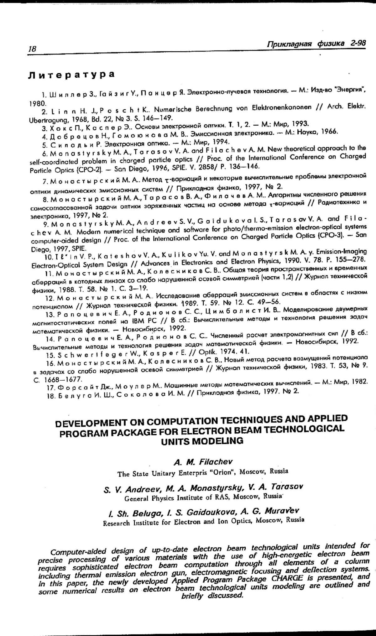 Математическое моделирование современных электронно-лучевых технологических установок, предназначенных для прецизионной обработки различных материалов электронным пучком высокой энергии, предполагает “сквозной просчет” электронного пучка с учетом всех элементов колонны, включая термоэмиссионную электронную пушку, электромагнитную фокусирующую и отклоняющую системы. В данной статье представлен новый пакет прикладных программ “CHARGE” и обсуждаются некоторые численные результаты математического моделирования электронной оптики ЭЛТУ