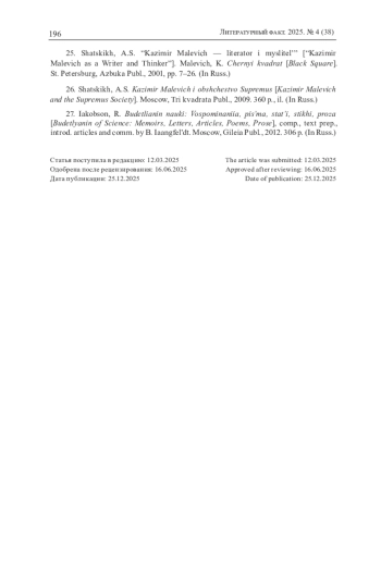 25. Шатских А.С. Казимир Малевич - литератор и мыслитель // Малевич К. Черный квадрат. СПб.: Азбука, 2001. С. 7-26.