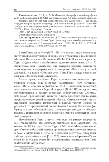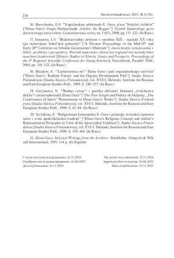 18. Birjukov S. “Лучезарная суть” Елены Гуpo и пути органического развития // Studia Slavica Finlandensia. Helsinki: [IREES], 1999. T. XVI/2. S. 249-257.