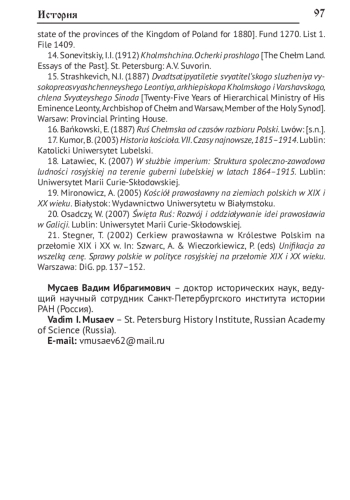 21. Stegner T. Cerkiew prawosławna w Królestwe Polskim na przełomie XIX i XX w. // Unifikacja za wszelką cenę. Sprawy polskie w polityce rosyjskiej na przełomie XIX i XX wieku. A. Szwarc, P. Wieczorkiewicz, red. Warszawa: DiG, 2002. S. 137-152.