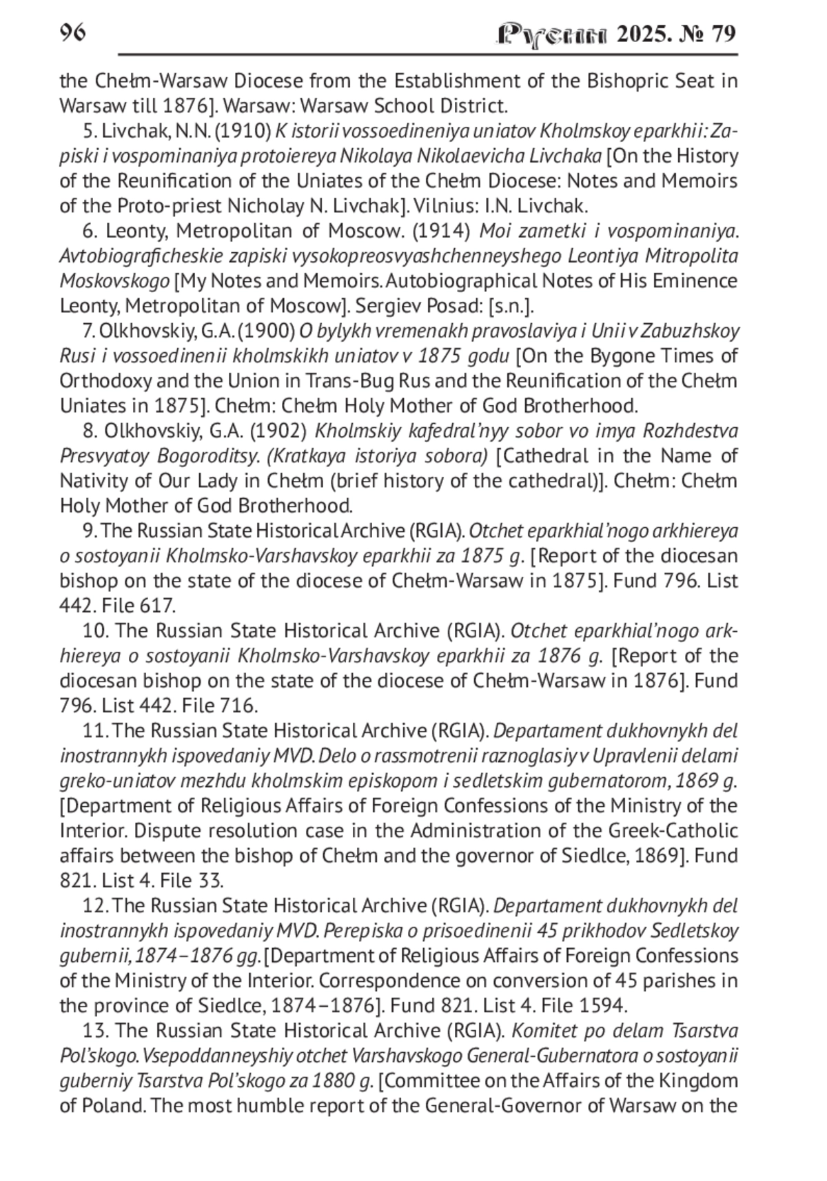 10. РГИА. Ф. 796. Оп. 442. Д. 716. Отчет епархиального архиерея о состоянии Холмско-Варшавской епархии за 1876 г.