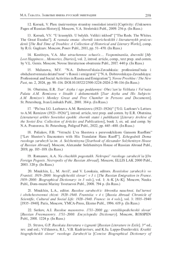 1. Алексеев А.Д. Литература русского зарубежья. Книги 1917-1940. Материалы к библиографии. СПб.: Наука, 1993. 202 с.