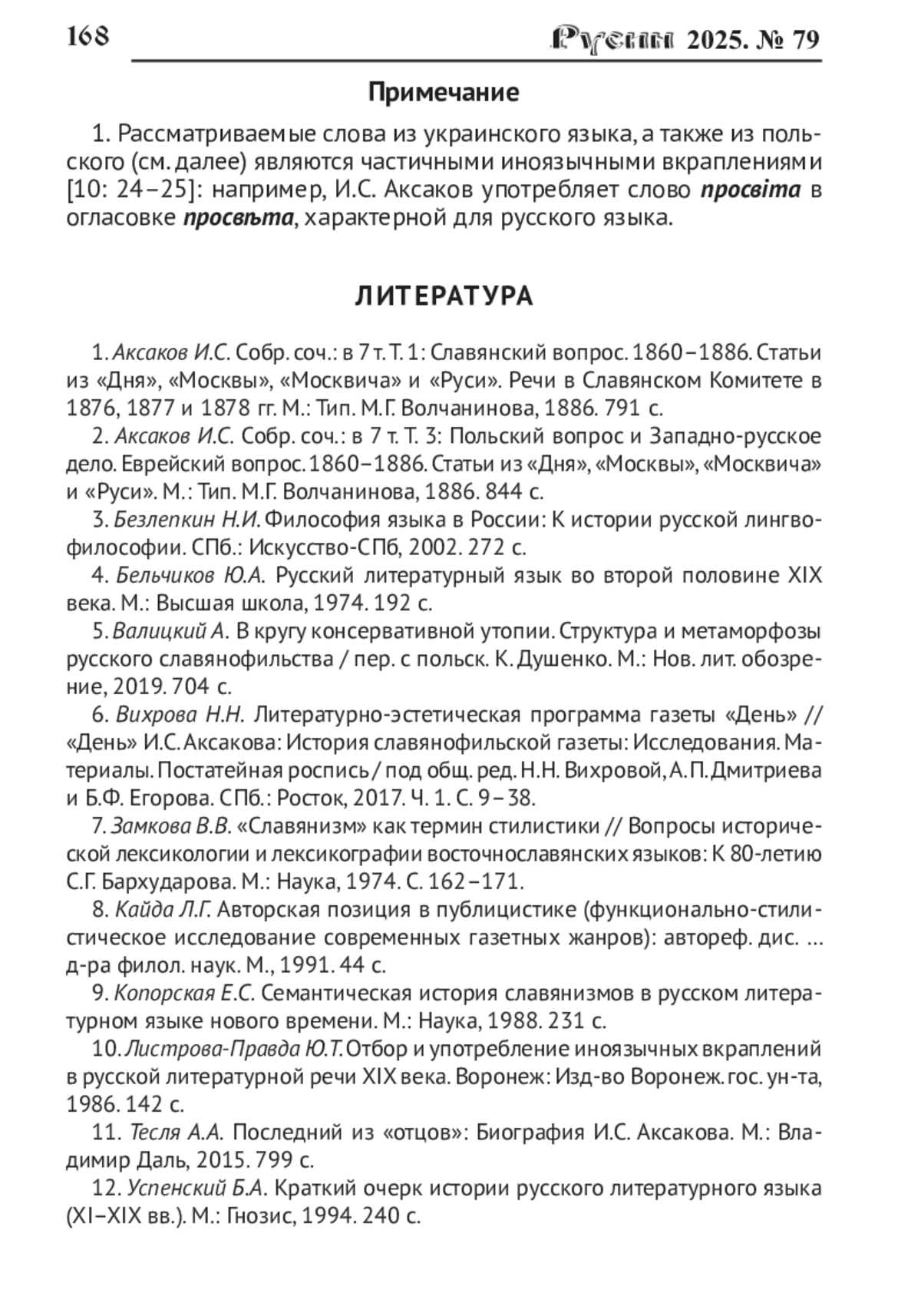 1. Аксаков И.С. Собр. соч.: в 7 т. Т. 1: Славянский вопрос. 1860-1886. Статьи из “Дня”, “Москвы”, “Москвича” и “Руси”. Речи в Славянском Комитете в 1876, 1877 и 1878 гг. М.: Тип. М.Г Волчанинова, 1886. 791 с.