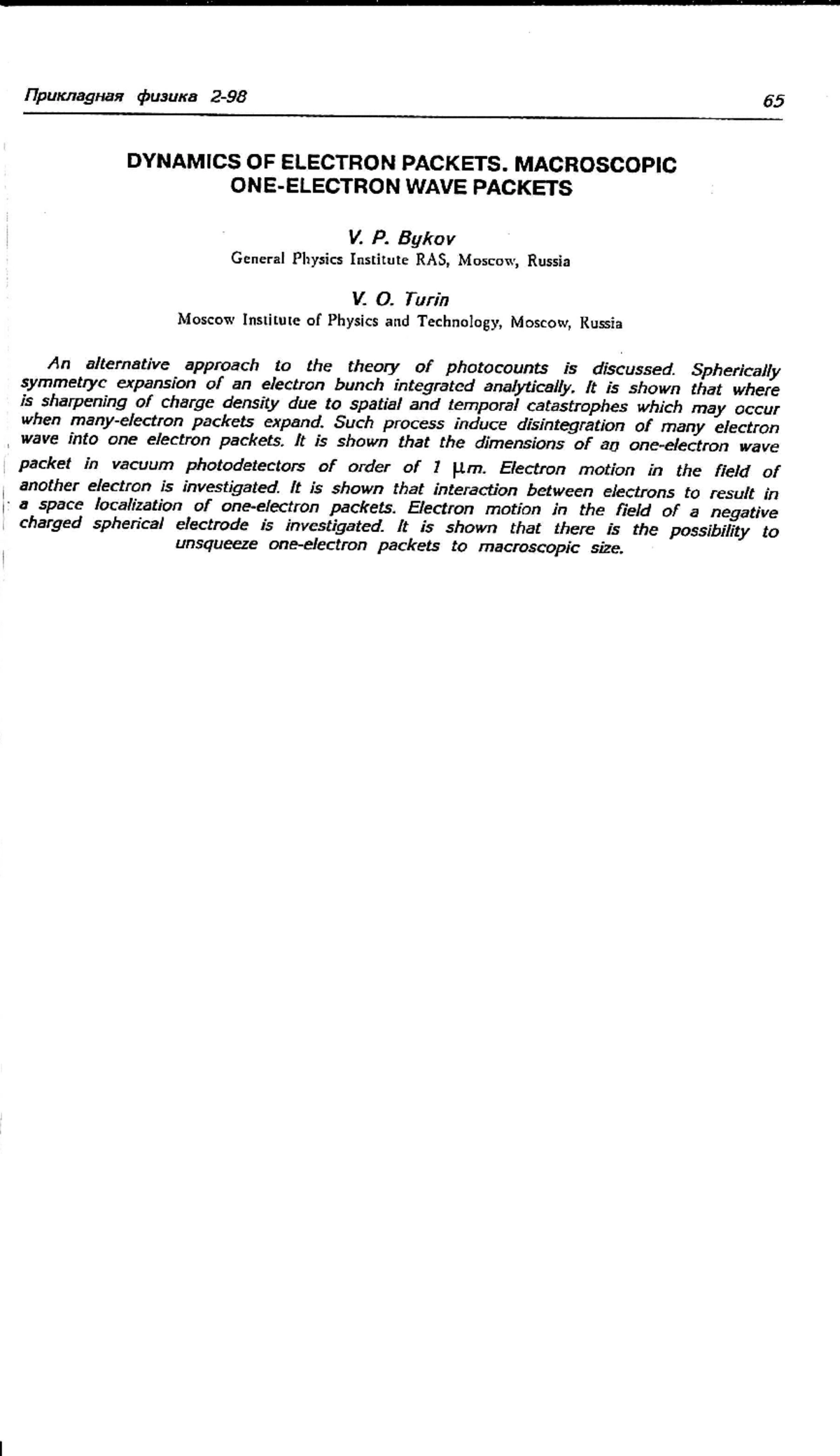 An alternative approach to the theory of photocounts is discussed. Spherically symmetryc expansion of an electron bunch integrated analytically. It is shown that where is sharpening of charge density due to spatial and temporal catastrophes which may occur when many-electron packets expand. Such process induce disintegration of many electron wave into one electron packets. It is shown that the dimensions of an one-electron wave packet in vacuum photodetectors of order of 1 µm. Electron motion in the field of another electron is investigated. It is shown that interaction between electrons to result in a space localization of one-electron packets. Electron motion in the field of a negative charged spherical electrode is investigated. It is shown that there is the possibility to unsqueeze one-electron packets to macroscopic size