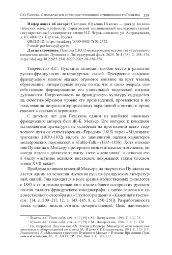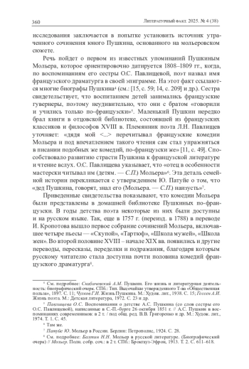 14. Томашевский Б.В., Вольперт Л.И. Мольер // Пушкин: Исследования и материалы. СПб.: Наука, 2004. Т. XVIII-XIX: Пушкин и мировая литература. Материалы к “Пушкинской энциклопедии” / отв. ред. В.Д. Рак. С. 209-211.
