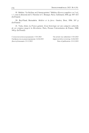 17. Louvat-Molozay B., Bourqui C., Piéjus A. Note sur le texte // Molière. Œuvres complètes: en 2 vol. / sous la direction de G. Forestier et C. Bourqui. Paris: Gallimard, 2010. T. 1. P. 1497-1505.