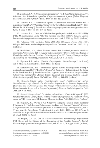 20. Шуган О.В. М. Горький и история реставрации Пушкинского заповедника //Вестник Костромского государственного университета. 2024. Т. 30. № 3. С. 74-82. EDN: HLZATM