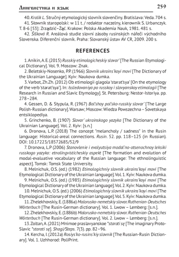 6. Дронова Л.П. Понятие “тоска / печаль” в русинском языке: историкоареальные связи // Русин. 2018. № 52. С. 118-125. EDN: XYMWPZ