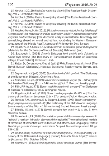 17. Керча И. Русинсько-росiйський словник. Понад 58 000 слiв = Русинскорусский словарь. Свыше 58 000 слов: в 2 т. Т. 2: О-Я. Ужгород: ПолiПрiнт, 2007. 608 с.