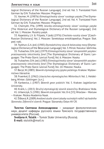 35. Этимологический словарь славянских языков: праславянский лексический фонд: в 42 вып. / подгот. О.Н. Трубачев, В.А. Меркулова, Ж.Ж. Варбот и др.; под ред. О.Н. Трубачева. Вып. 6. М.: Наука, 1979. 223 с.