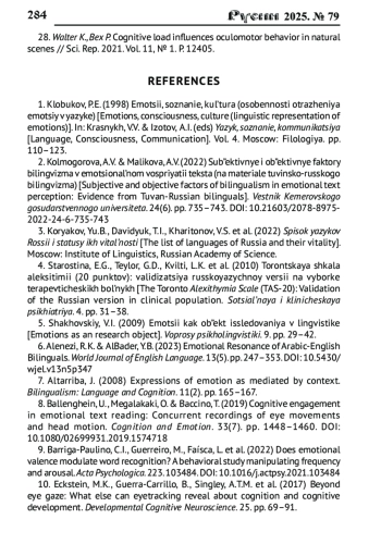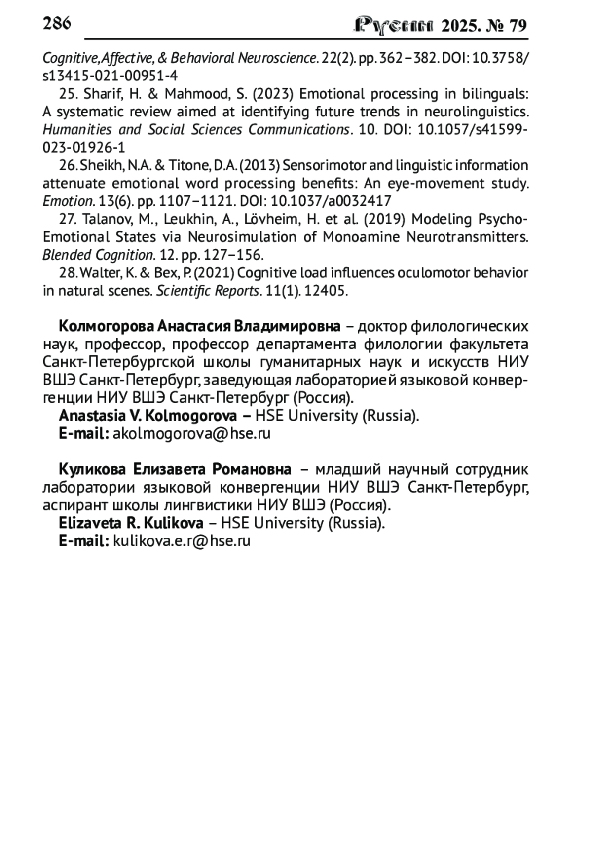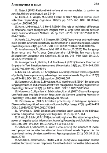 25. Sharif H., Mahmood S. Emotional processing in bilinguals: a systematic review aimed at identifying future trends in neurolinguistics // Humanit Soc Sci Commun. 2023. № 10. DOI: 10.1057/s41599-023-01926-1