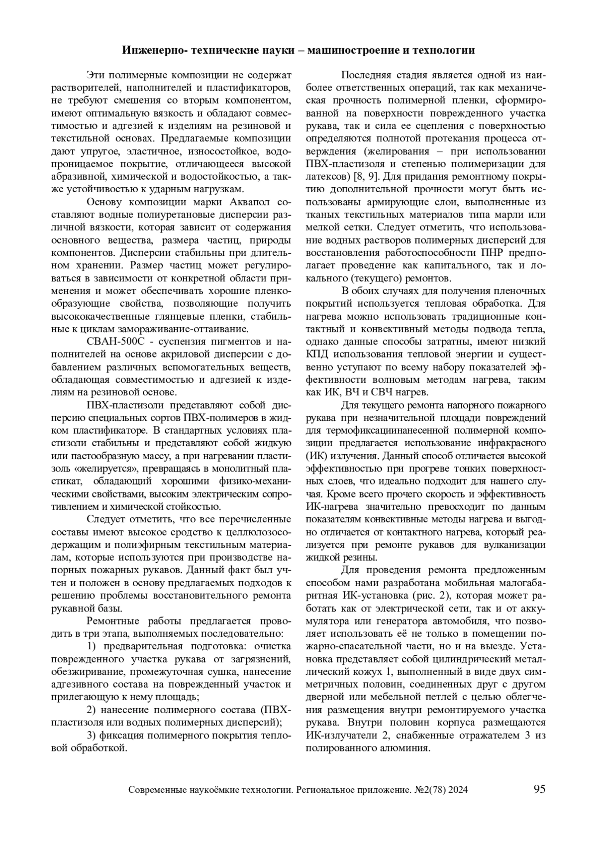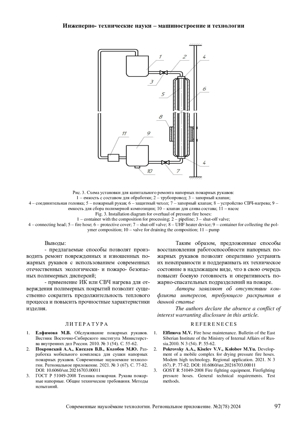 2. Покровский А.А., Киселев В.В., Колобов М.Ю. Разработка мобильного комплекса для сушки напорных пожарных рукавов. Современные наукоемкие технологии. Региональное приложение. 2021. № 3 (67). С. 77-82. DOI: 10.6060/snt.20216703.00011 EDN: QCZBFP